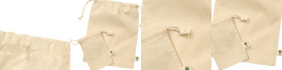 12 oz cotton canvas; 18" x 24"; Cotton web handles; Drawstring closure; Non-branded label/tag;