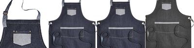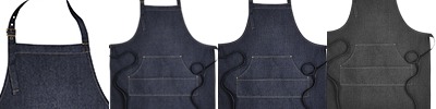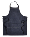 8 oz., 70% cotton, 30% polyester twill; 14" wide centre pocket with reverse contrast trim; combined pen pocket; metal eyelets secure 39" contrast fabric ties; neckband with gun metal buckle fastening for height adjustment; reverse contrast denim top centre pocket; 34" L x 28" W; Oeko-Tex® Standard 100 certified; WRAP certified;