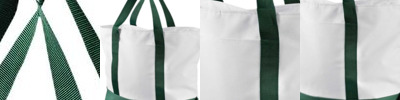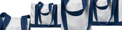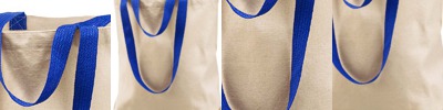 12 oz cotton canvas; 15" x 16"; 20" self-fabric handles; Non-branded label/tag;