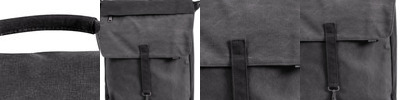 - Metal clip and d-ring closure on flap