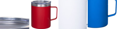 - Matte finish powder-coated 12 oz. (354 mL) double wall vacuum insulated coffee mug