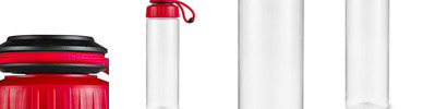 - 25 oz. (740 mL) sports bottle made of durable Tritan plastic with duo function Polypropylene plastic lid with Dacron strap