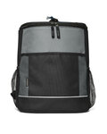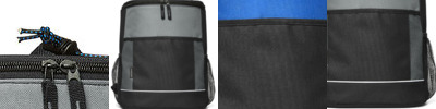 - Front black pocket with mesh-patterned accent panels and hook and loop fastener closure (approx 22"w x 10.25"h)
