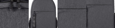 - Front zippered pocket backed by another vertical zippered pocket for smaller essentials